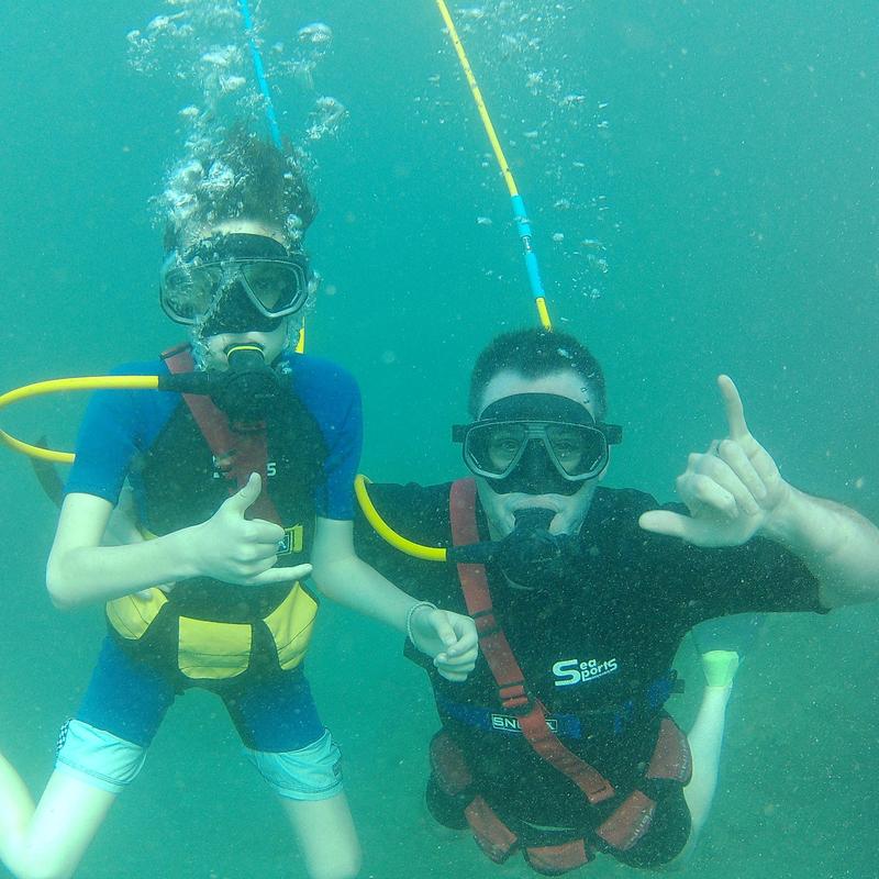People who want to try SNUBA often wonder if there is any skill or certifications involved. The answer is no! Anyone can SNUBA, whether it’s your six-year-old or your 75-year-old grandmother, anyone at any age can SNUBA. All it requires is 15 minutes of training and then you are free to go on a guided tour with a professional SNUBA instructor. If you are interested in SNUBA, you might be wondering how it works. SNUBA involves having an air supply tank that is located on top of a raft, with an air line that is 20 feet long. Although our maximum depth is 20 feet below the surface, that does not mean you have to go all the way down to 20 feet! One of the best things about SNUBA is that everyone gets to go at their own pace without affecting anyone else in the group!