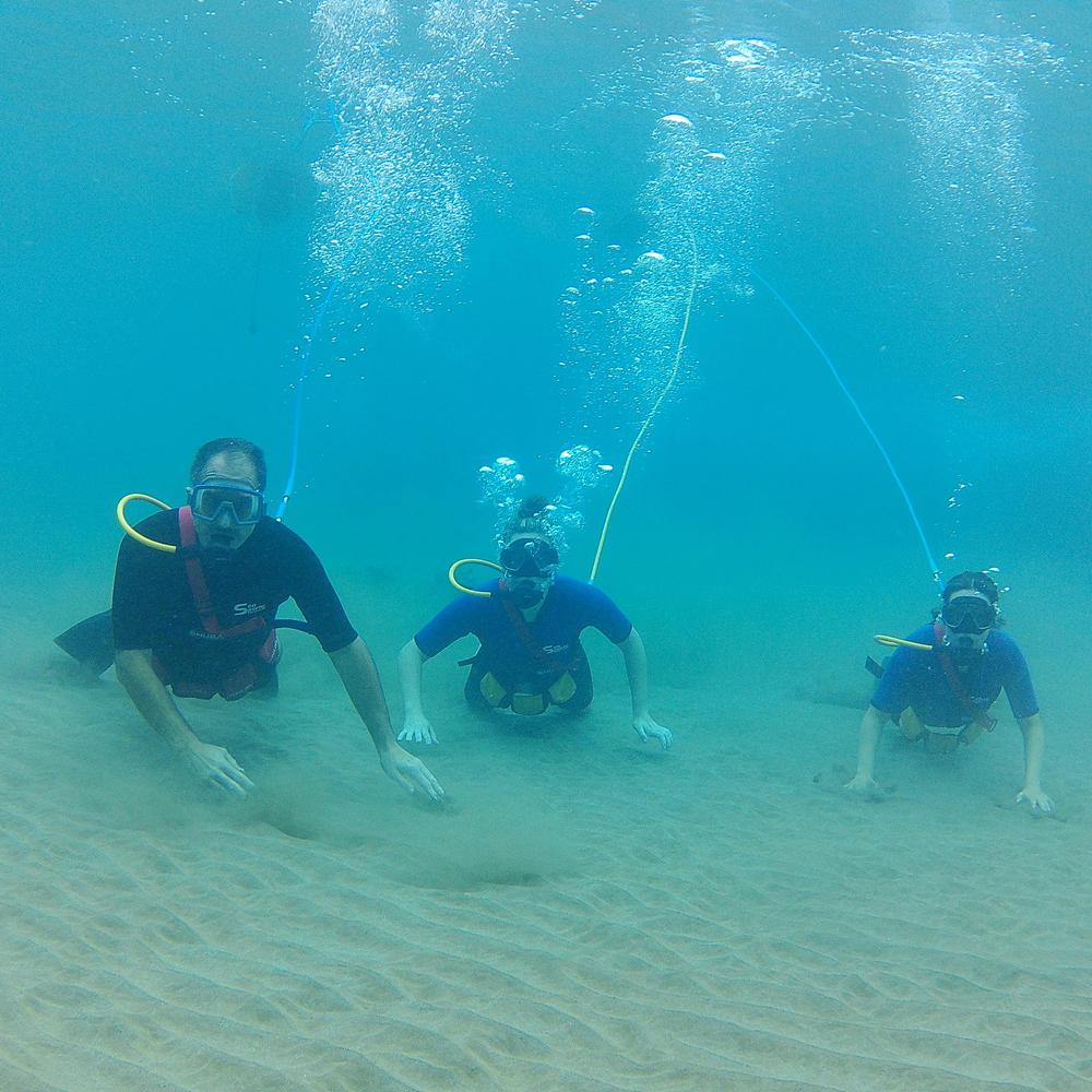 Once our pre-dive training is complete, we suit up and walk in directly from the beach. We then practice breathing through the regulator in shallow water until everyone in your group is comfortable. Our guides will be right there next to you providing instruction but only you and other members of your group decide when you are ready to go out further. At that point, we begin exploring the amazing underwater world!