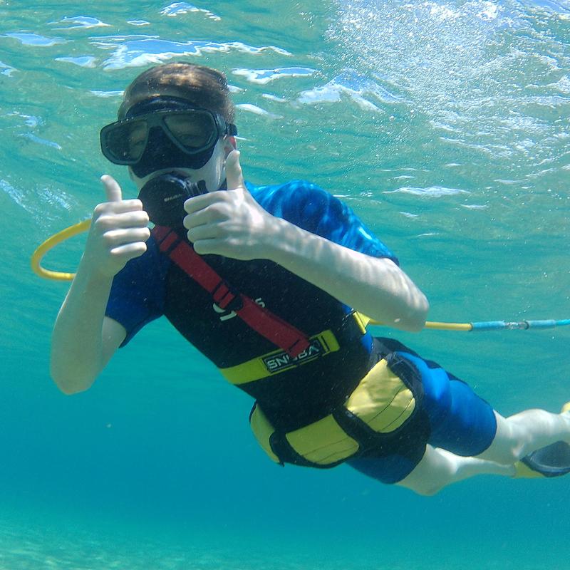 - You must be at least 8 years old to wear weights and go underwater. If younger, no problem! See our Snuba Doo section below.